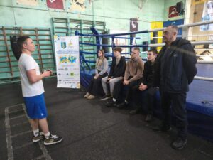 Студенти долучилися до тренування з боксу, яке провів майстер спорту України, тренер-викладач відділення боксу Івано-Франківської ОДЮСШ — Едуард Трофименко. Під час заняття учасники дізналися про специфіку підготовки боксерів, особливості навчально-тренувального процесу та вимоги до професії тренера у бойових видах спорту.