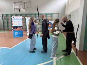 Після розминки учні мали можливість спробувати свої сили у стрільбі з олімпійського лука під керівництвом Андрія Бойчука — бронзового призера Всесвітніх Ігор Нескорених, ветерана та інструктора зі стрільби з лука, а також Олега Ковальчука — члена виконкому та секретаря відділення НОК України в Івано-Франківській області.