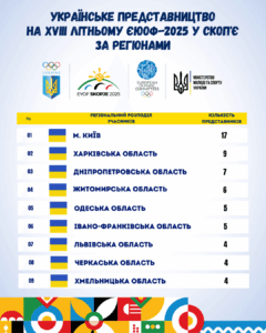 - м. Київ – 17 спортсменів
